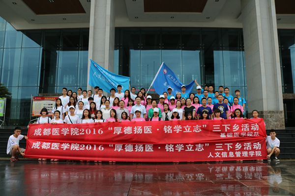 7月14日,基础医学院和人文信息管理学院“三下乡”社会实践服务团队在基础医学院党委副书记王绪伦、人文信息管理学院党委副书记朱德超、基础医学院学生科科长徐艳老师、辅导员郑蕖、罗艳荣、李娟、杨敬和王四龙老师的带领下前往四川省成都市青白江区凤祥社区,开展了以“厚德扬医·铭学立志”为主题的三下乡社会实践活动。