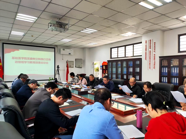 3月11日下午,基础医学院召开树立和践行正确政绩观学习教育部署启动会,对全院学习教育工作进行动员安排。基础医学院党委书记朱德超主持会议,学院党委班子参加会议,各党支部书记及党外代表人士列席会议。