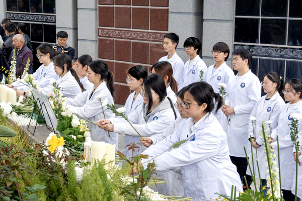 清明期间系列缅怀活动,是我校推动医学专业教育与人文思政教育深度融合的生动实践。作为教育部高等学校医学人文素质教育基地,学校长期依托“馨香园—感念堂—人体生命馆”特色教育阵地,将“无语良师”无私奉献精神融入解剖实验教学、日常育人全过程,引导全体师生树立敬畏生命、尊重生命、珍视生命的理念,恪守医者初心、精进医疗医术。